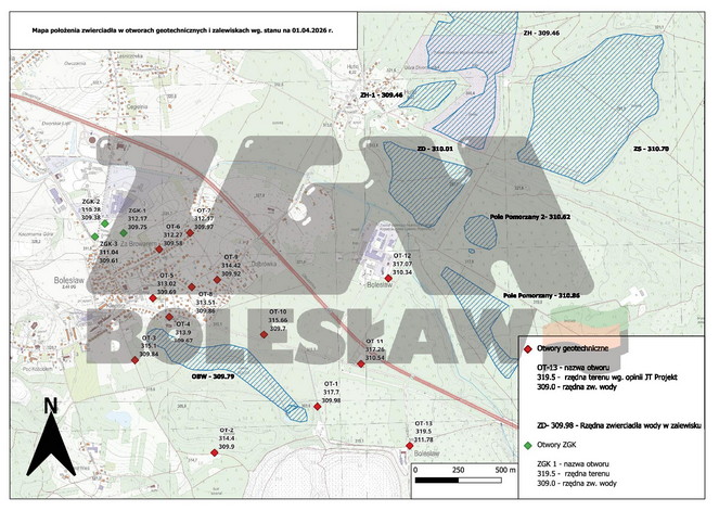 Otwory geotechniczne w centrum Bolesławia odczyt z dnia 01.04.2026