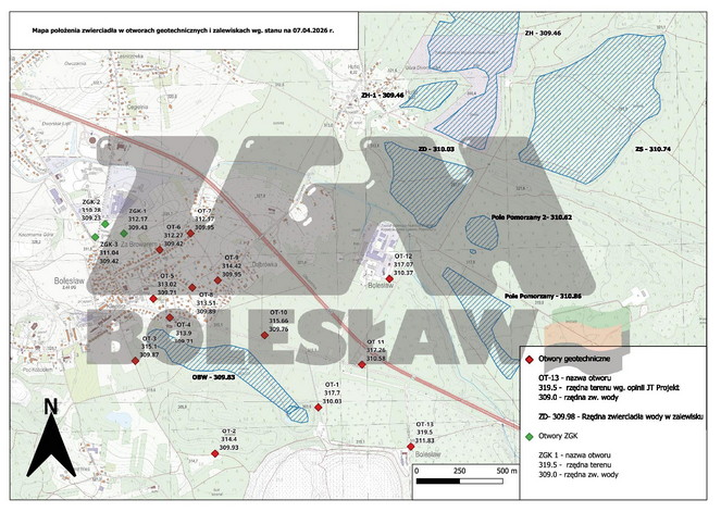 Otwory geotechniczne w centrum Bolesławia odczyt z dnia 07.04.2026