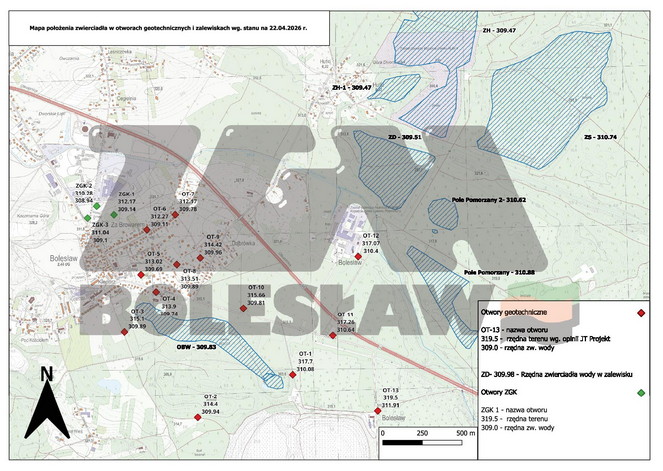 Otwory geotechniczne w centrum Bolesławia odczyt z dnia 22.04.2026r.