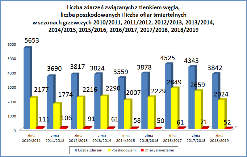 niewłaściwej eksploatacji urządzeń grzewczych, elektrycznych i gazowych. W tym samym okresie odnotowywany jest także wzrost liczby zatruć tlenkiem węgla, zwanym "cichym