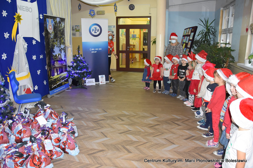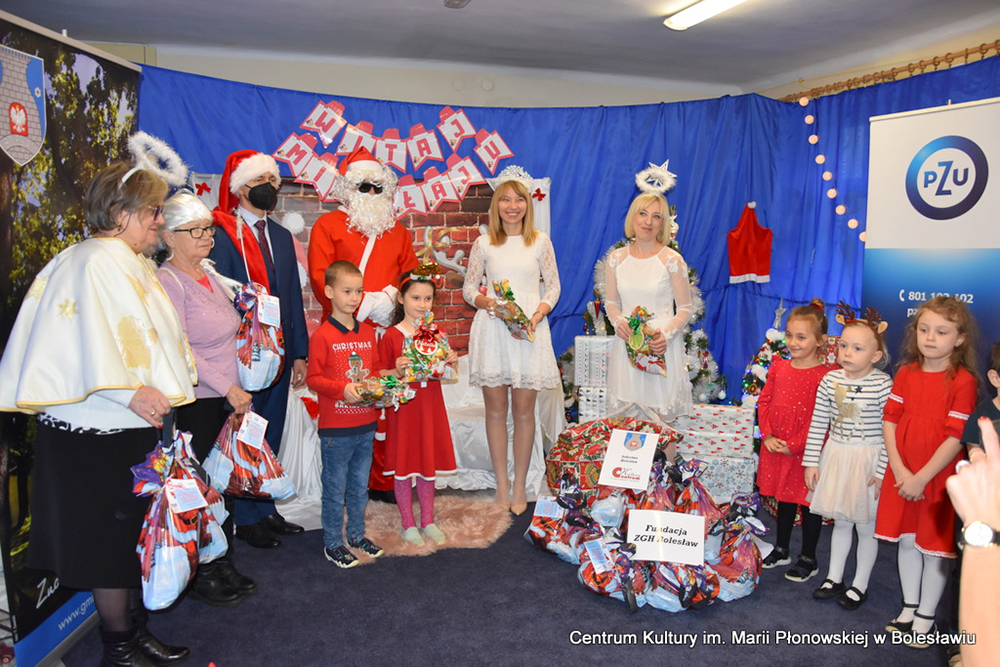 Wójt Gminy Bolesław Krzysztof Dudziński wraz z sołtys Bolesławia Stefanią Pichlak oraz Przewodniczącą Rady Sołeckiej Małgorzatą Czubajewską - przedstawicielkami sołectwa Bolesław, które było współorganizatorem wydarzenia, wręczyli dzieciom prezenty ufundowane przez sponsorów: PZU oraz Fundację ZGH „Bolesław”.