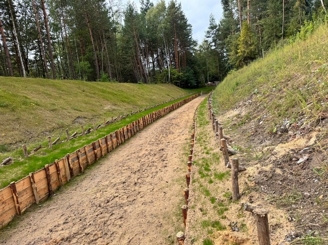 Koryto zostało oczyszczone z drzew, krzewów i korzeni, uformowano skarpy i wzmocniono obrzeża na odcinku od odtworzonej części rowu Sztolni Ponikowskiej w kierunku zachodnim do miejsca, gdzie rów przechodzi w ciek pod nazwą Sztolnia Ponikowska. Powstał przepust na drodze leśnej prowadzącej do byłej zmywnicy nr 2. W przepuście zamontowano dwa rurociągi, które ułatwią przepływ wody w przyszłości. Droga nad przepustem została utwardzona tłuczniem oraz zabezpieczona barierami ochronnymi. Zbudowano także betonową groblę, która zatrzyma gwałtowny przepływ wody w rowie Sztolni Ponikowskiej. Odcinek pomiędzy groblą a drogą został wyłożony betonowymi płytami zarówno na brzegach rowu jak i na jego dnie. Wykonana została także wycinka drzew porastających rów sztolni za przepustem, w kierunku wschodnim.
