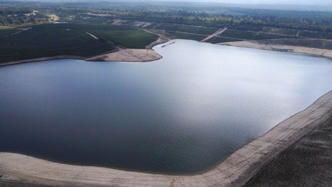 Teren ten należy do ZGH „Bolesław” S.A. Na wniosek spółki Gmina Bolesław wydała zezwolenie na wycinkę drzew. Była ona prowadzona sukcesywnie w miarę podnoszenia się lustra wody. Niestety, nie zrobiono tego w tzw. terenach zawałowych, czyli w miejscu, które najwcześniej pokryło się wodą – najniżej położonej zalanej części obwodnicy.