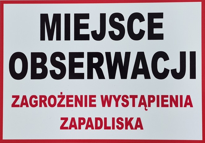 Uwaga! Zapadliska, choć ich występowanie w miarę podnoszenia się lustra wody jest coraz rzadsze, pojawiają się w miejscach oznaczonych, często wygrodzonych i opisanych jako miejsca zagrożone ich powstaniem i wyraźnym zakazem wstępu. Prosimy o przestrzeganie tego zakazu i zachowanie w pobliżu oznaczonych miejsc szczególnej ostrożności.