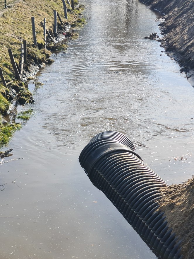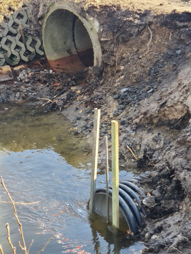 Niestety, wójt nie uzyskał zgody na obniżenie lustra wody przed przepustem pod ul. Szkolną poprzez zastosowanie dodatkowej rury ø 200 lub ø 315 pod przepustem.