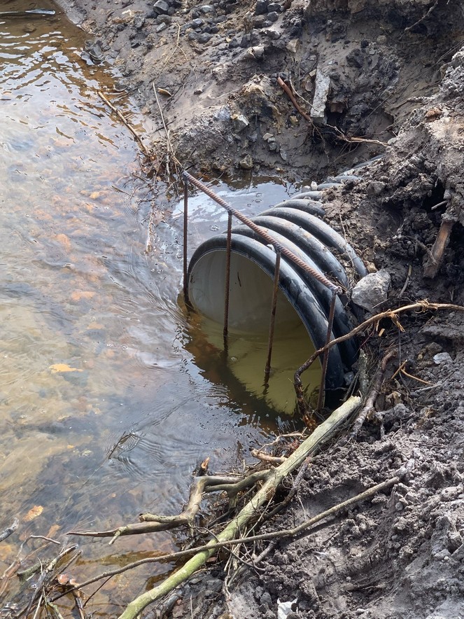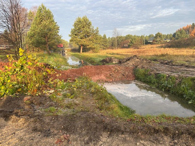 Niestety dotychczasowe próby przebudowy przepustu znajdującego się na działce prywatnej, w innej gminie i województwie, mimo wielu pism skierowanych do Nadleśnictwa Siewierz oraz Prezydenta Miasta Dąbrowa Górnicza, nie przyniosły oczekiwanego efektu.