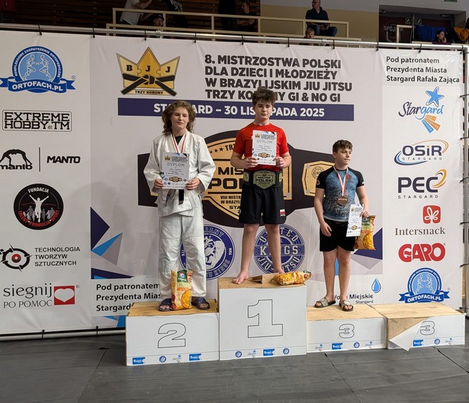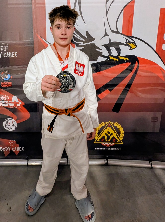 Z kolei 29 listopada 2025 roku, w Tarnowie, podczas Open European Championship Combat Ju-Jitsu nasz młody zawodnik wystąpił na zaproszenie klubu z Głogowa. Wywalczył tam III miejsce.