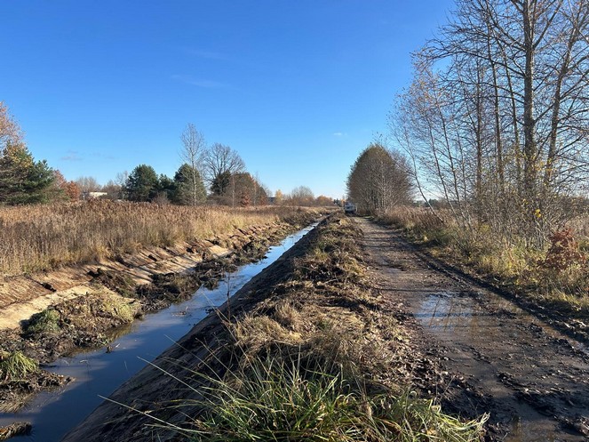 Laski. Oczyszczenie kanału na tym odcinku pozwoli na swobodny odpływ wody ze Sztolni Bolesławskiej oraz rowu wzdłuż drogi powiatowej DP1073K, czyli ulicy Laskowskiej w