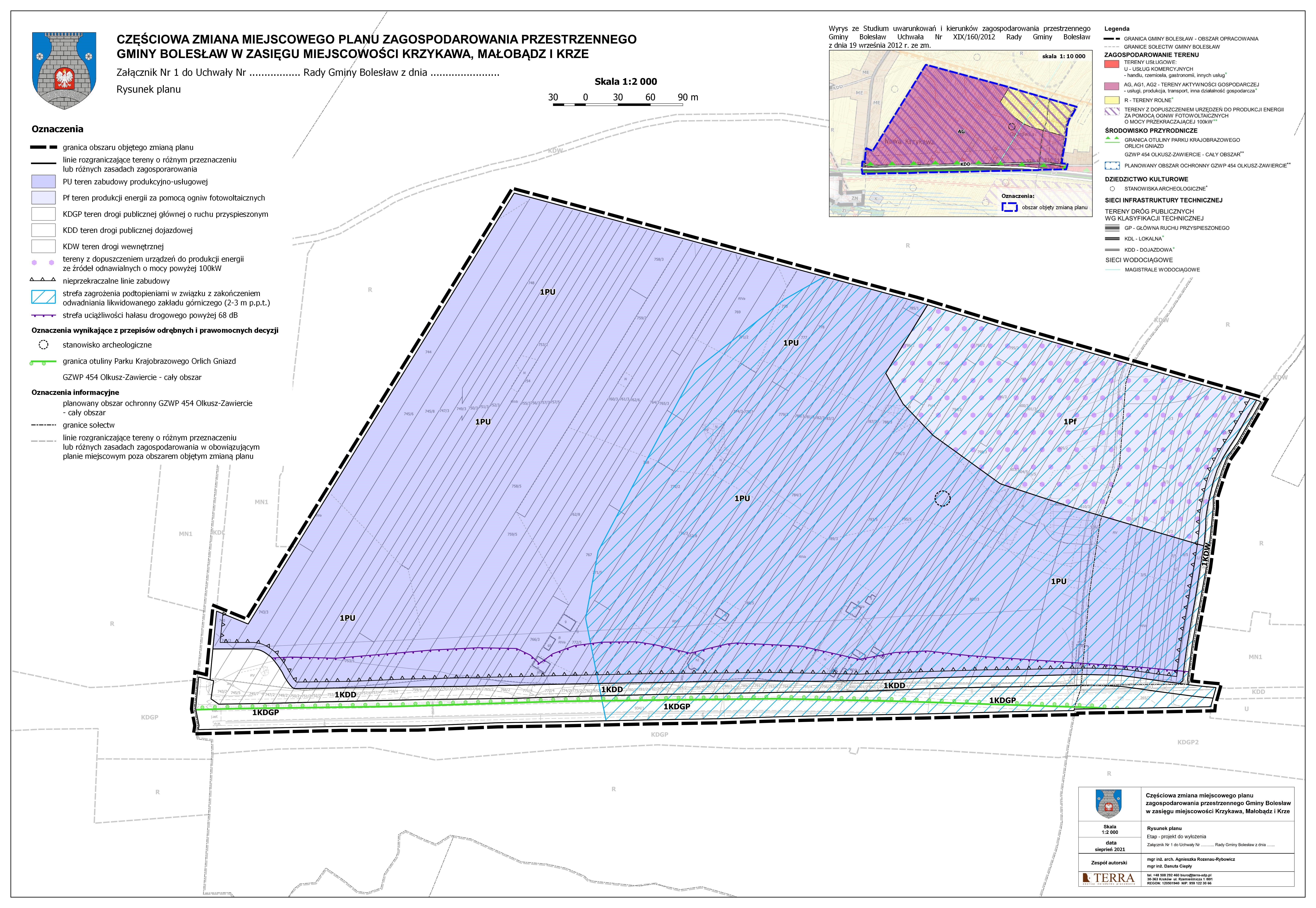 o wyłożeniu do publicznego wglądu oraz o możliwości zapoznania się z niezbędną dokumentacją projektu zmiany miejscowego planu zagospodarowania przestrzennego Gminy Bolesław obejmującej miejscowości Krzykawa, Małobądz i Krze wraz z prognozą oddziaływania na środowisko, które odbędzie się w dniach od 3 września 2021 r. do 24 września 2021 r. w siedzibie Urzędu Gminy Bolesław, pok. nr 7 ul. Główna 58, 32-329 Bolesław w godzinach pracy urzędu.