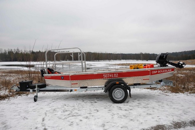 Dzięki dofinansowaniu z Programu Ochrony Ludności i Obrony Cywilnej gmina Bolesław zakupiła m.in. łódź płaskodenną silnikową z przyczepką transportową i osprzętem.