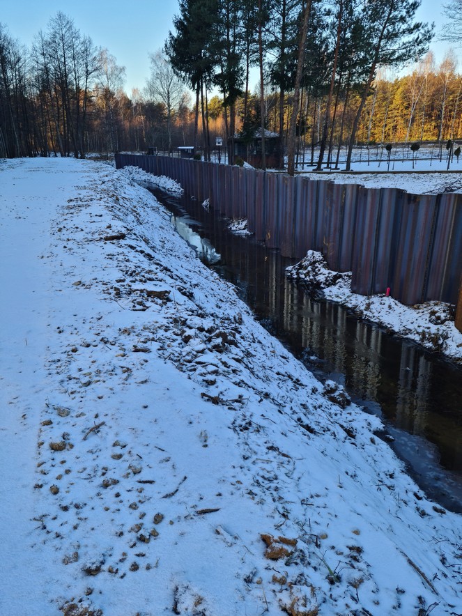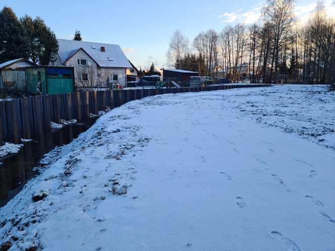 Zakończyły się roboty polegające na wykonaniu umocnienia i podniesieniu brzegu północnego w celu zabezpieczenia przed zalaniem posesji prywatnych wzdłuż ul. Głównej w Laskach (od przepompowni ścieków w kierunku ujścia - do końca ogrodzeń posesji).