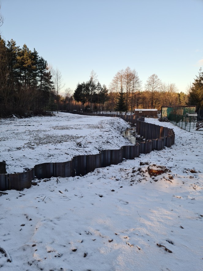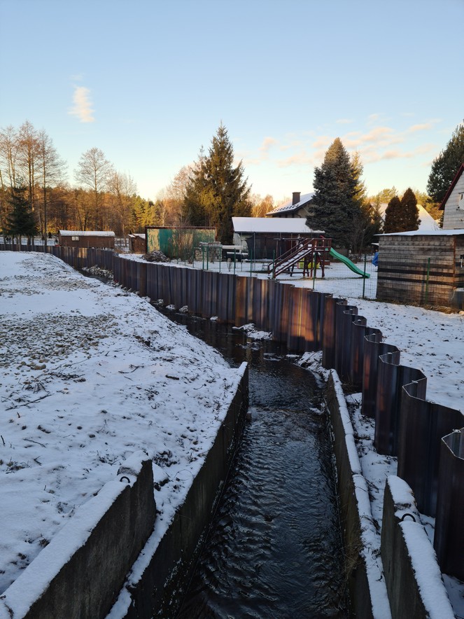 Prace, zlecone przez ZGH „Bolesław” S.A., wykonała specjalistyczna firma. Polegały one na wbiciu w grunt stalowych grodzic, zwanych popularnie „larsenami”. Po połączeniu utworzyły one szczelną, zwartą ściankę, która będzie skutecznie przeciwdziała naporowi gruntu i wody, a co za tym idzie - zabezpieczy posesje znajdujące się w pobliżu tego cieku wodnego przed ewentualnym wylaniem i podtopieniem.