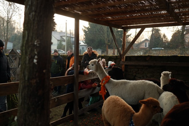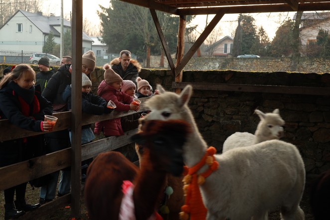 Najmłodszych uczestników gminnej wigilii, ucieszyła żywa szopka z alpakami. Były też stoiska z rękodziełem w świątecznym klimacie, choinki z kolorowymi światełkami i płonące