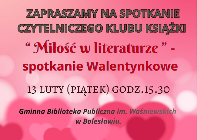 Serdecznie zapraszamy na spotkanie Czytelniczego Klubu Książki.
