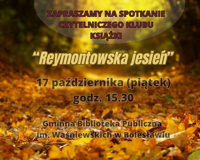 Serdecznie zapraszamy na spotkanie Czytelniczego Klubu Książki. 2025 ogłoszono rokiem Wł. St. Reymonta w związku z czym tematem spotkanie będą Chłopi T. 1 Jesień.czytaj więcej