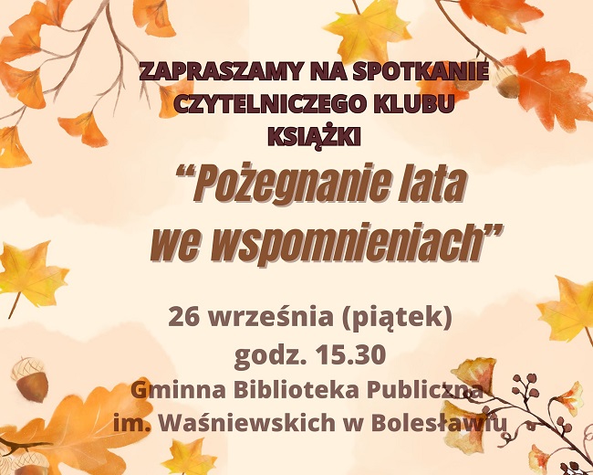 Zapraszamy na kolejne spotkanie Czytelniczego Klubu Książki.