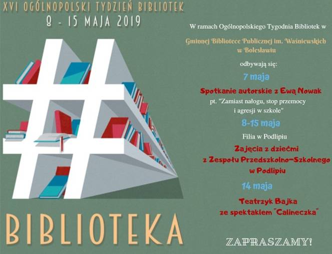 XVI Ogólnopolski Tydzień Bibliotek 8-15 maja 2019.