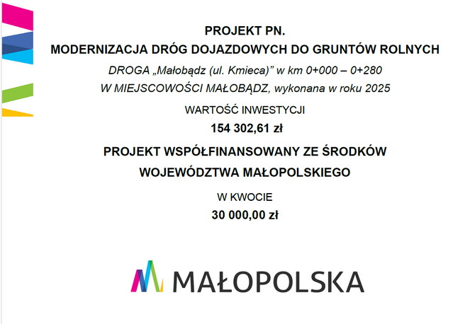 Modernizacja drogi dojazdowej do gruntów rolnych w miejscowości Małobądz (ul. Kmieca) w 2025 roku